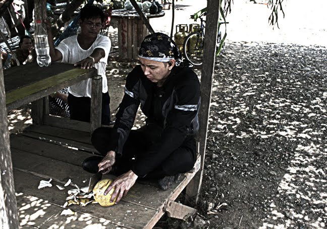 .. and the villagers rushed out to pass us some co-co-nut to quench our thirst ...